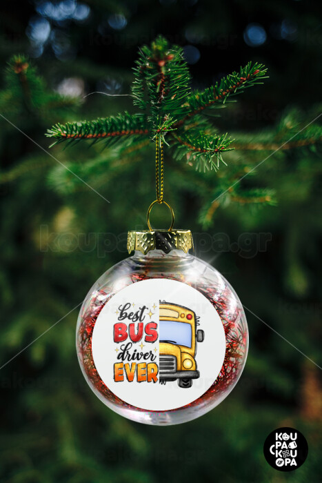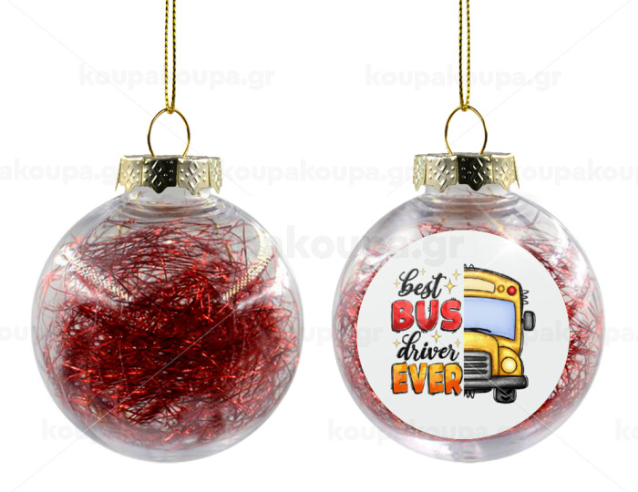Best bus driver ever!, Transparent Christmas tree ball ornament with red filling 8cm