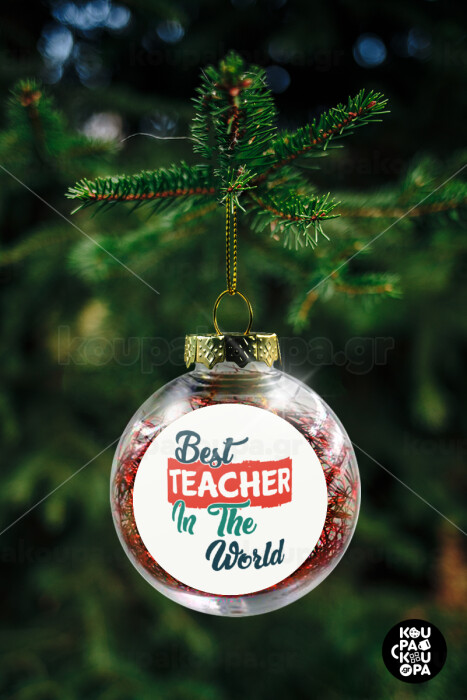Best teacher in the World!, Transparent Christmas tree ball ornament with red filling 8cm