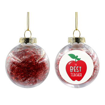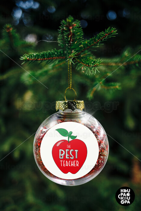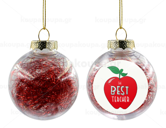 Best teacher, Transparent Christmas tree ball ornament with red filling 8cm