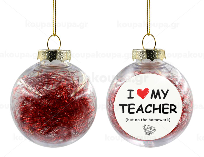 i love my teacher but no the homework, Transparent Christmas tree ball ornament with red filling 8cm