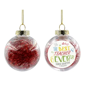 The best teacher ever!, Transparent Christmas tree ball ornament with red filling 8cm