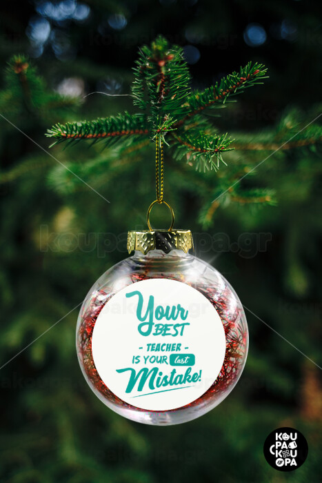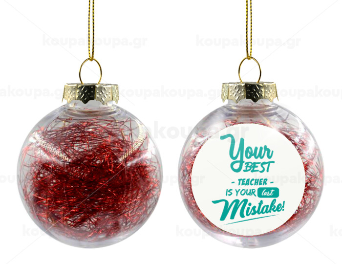 Your best teacher is your last mistake, Transparent Christmas tree ball ornament with red filling 8cm
