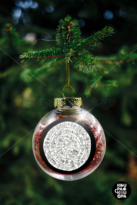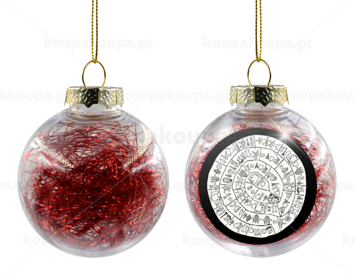 Δίσκος Φαιστού, Transparent Christmas tree ball ornament with red filling 8cm