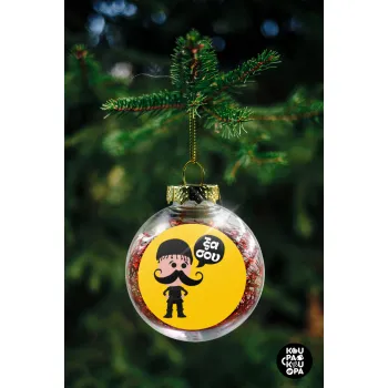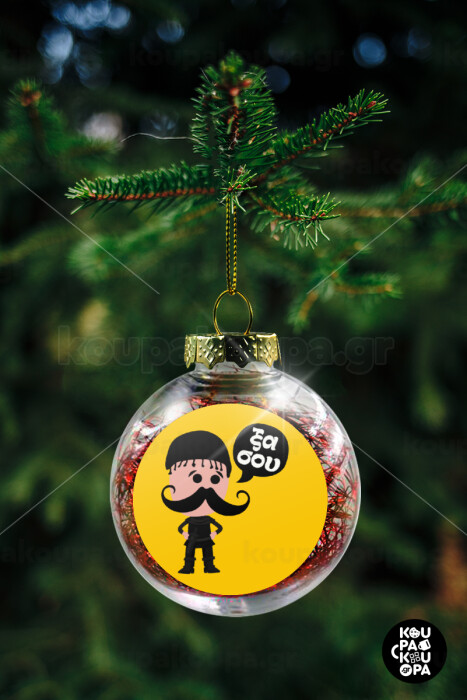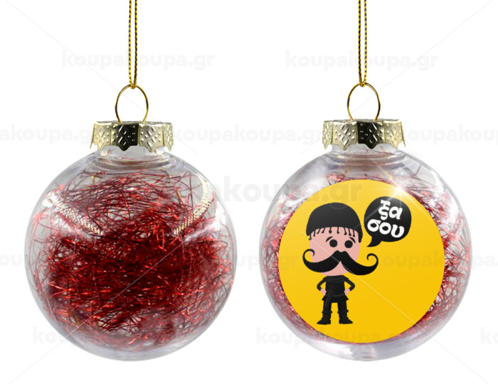 Κρητικός "Ξα σου", Transparent Christmas tree ball ornament with red filling 8cm