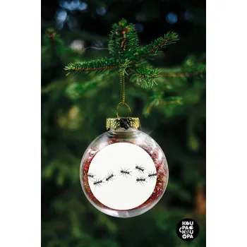 Ants, Transparent Christmas tree ball ornament with red filling 8cm