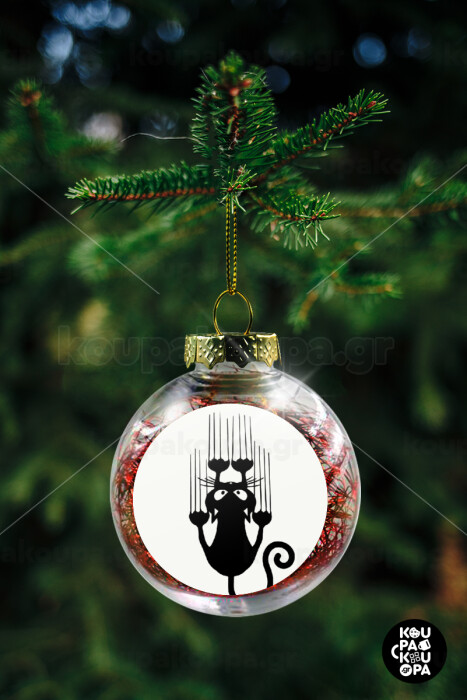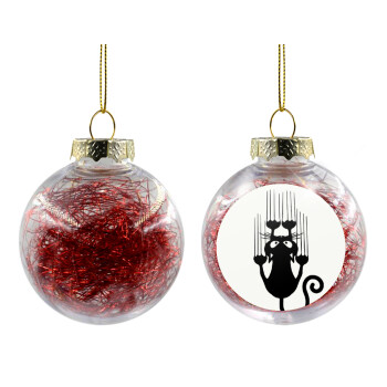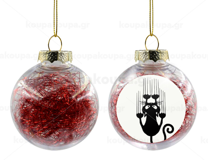 Cat scratching, Transparent Christmas tree ball ornament with red filling 8cm