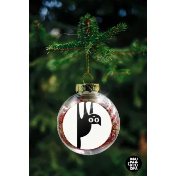 Cat upside down, Transparent Christmas tree ball ornament with red filling 8cm