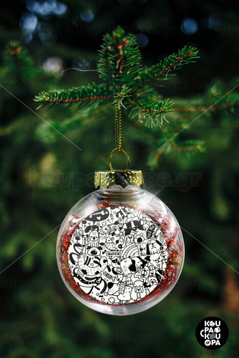 DOG pattern, Transparent Christmas tree ball ornament with red filling 8cm