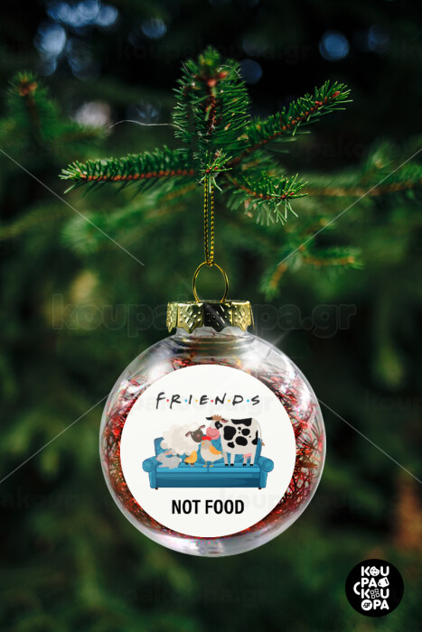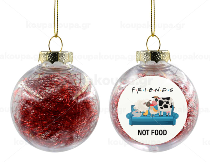 friends, not food, Transparent Christmas tree ball ornament with red filling 8cm