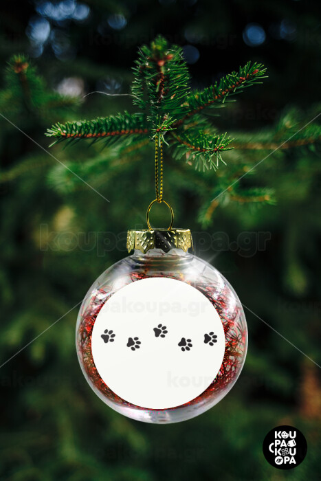 paw, Transparent Christmas tree ball ornament with red filling 8cm