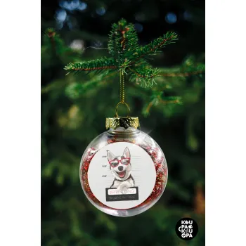 Warning, beware of Dog, Transparent Christmas tree ball ornament with red filling 8cm