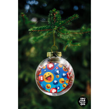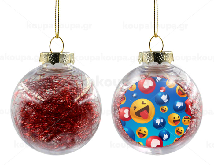 3D Emoji Collection, Transparent Christmas tree ball ornament with red filling 8cm