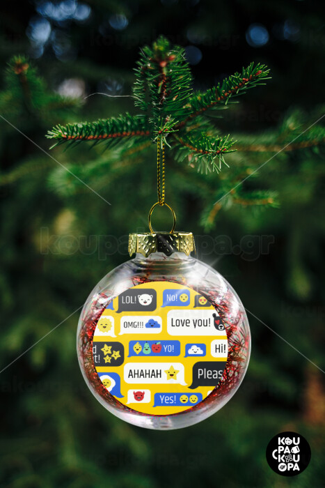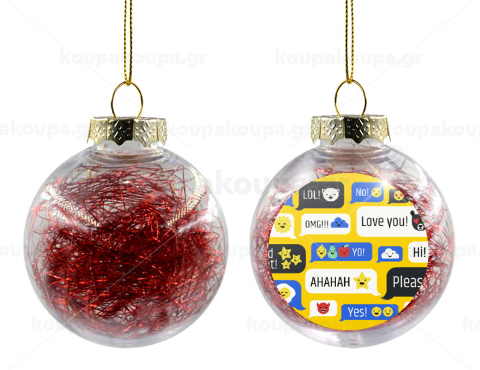 Emoji's text messages, Transparent Christmas tree ball ornament with red filling 8cm