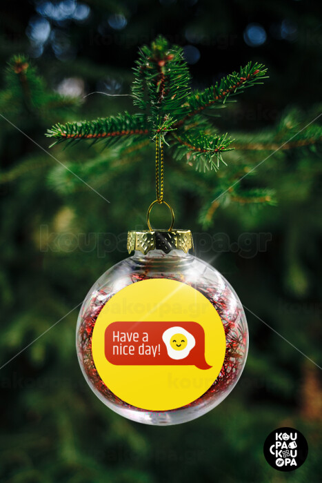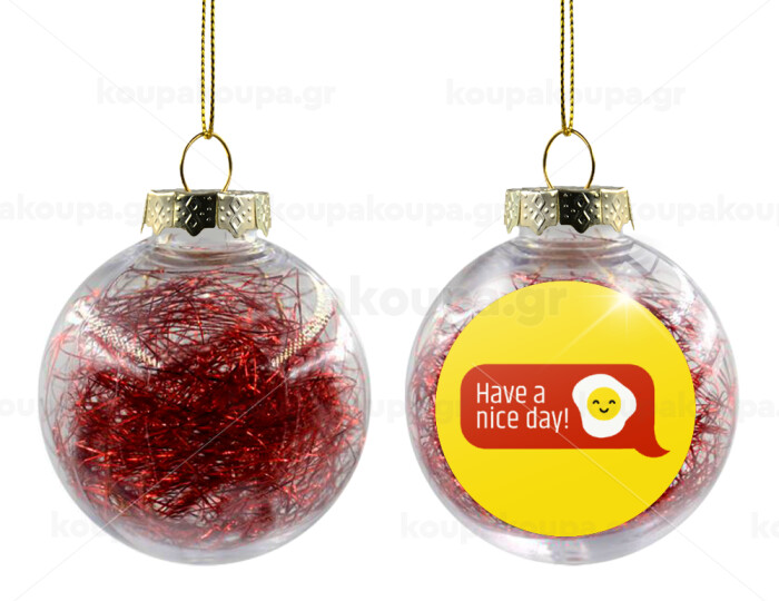 Have a nice day Emoji, Transparent Christmas tree ball ornament with red filling 8cm