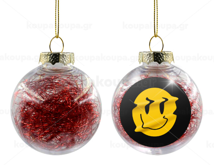 Smile avatar distrorted, Transparent Christmas tree ball ornament with red filling 8cm