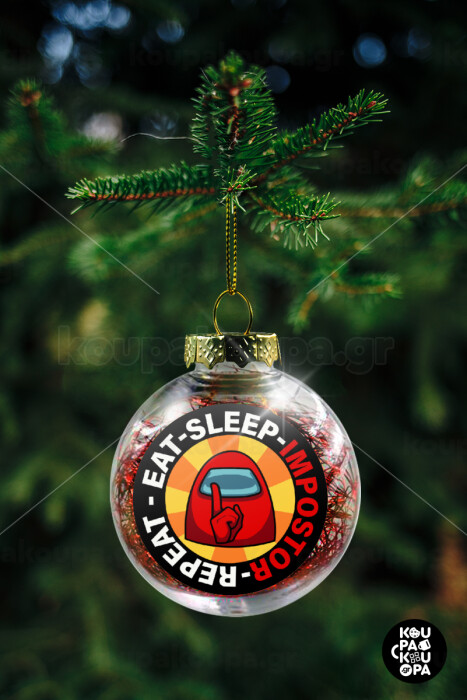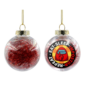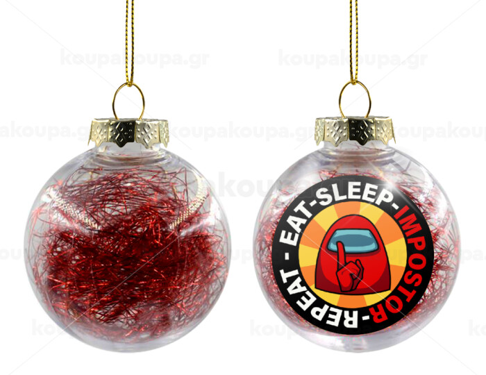 Among US Eat Sleep Repeat Impostor, Transparent Christmas tree ball ornament with red filling 8cm
