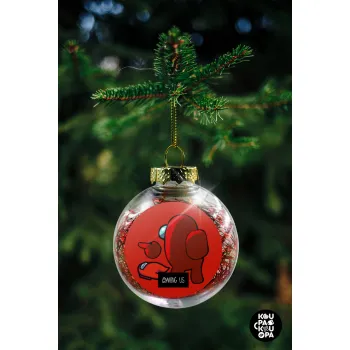 Among US i am impostor..., Transparent Christmas tree ball ornament with red filling 8cm