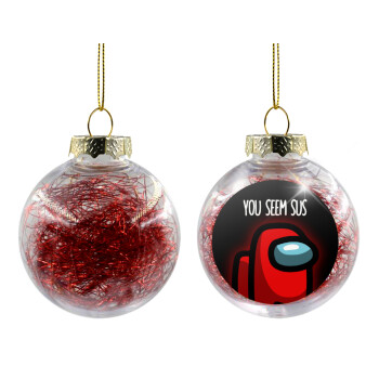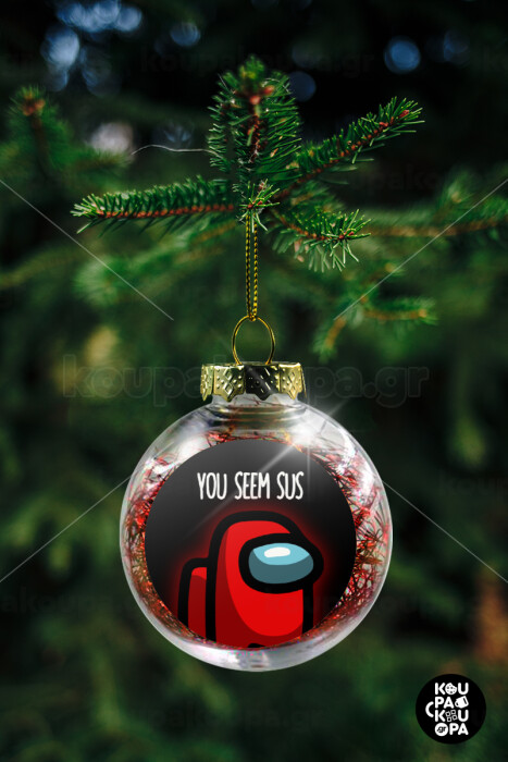 Among US, you seem sus, Transparent Christmas tree ball ornament with red filling 8cm