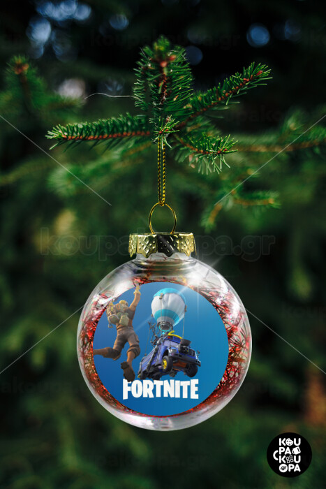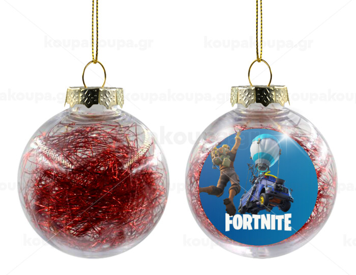 Fortnite Bus, Transparent Christmas tree ball ornament with red filling 8cm