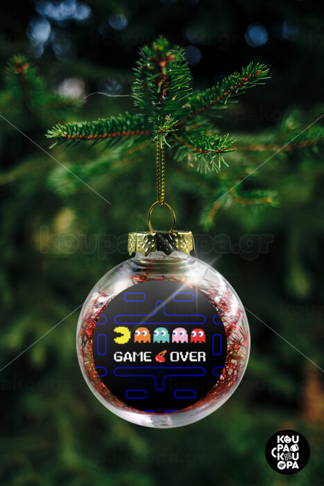 GAME OVER pac-man, Transparent Christmas tree ball ornament with red filling 8cm