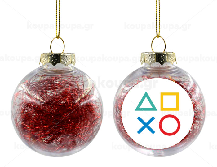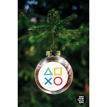 Gaming Symbols, Transparent Christmas tree ball ornament with red filling 8cm