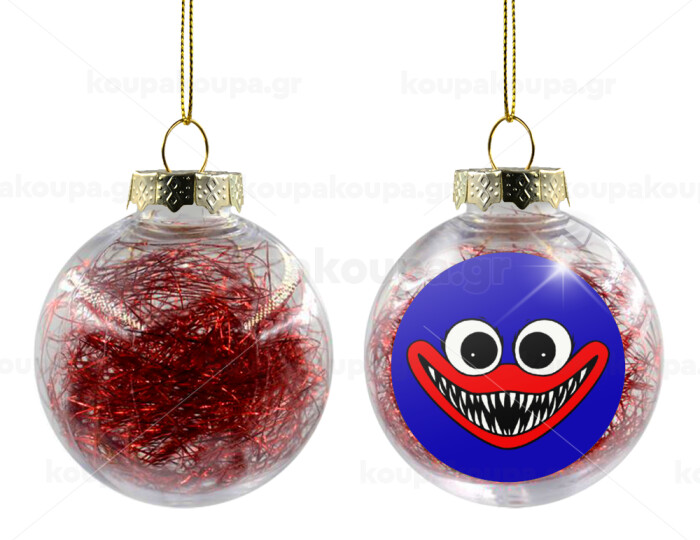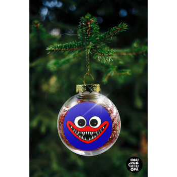 Huggy wuggy, Transparent Christmas tree ball ornament with red filling 8cm