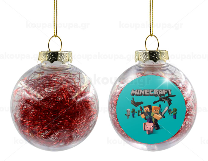 Minecraft Alex, Transparent Christmas tree ball ornament with red filling 8cm