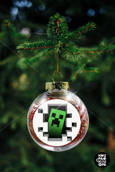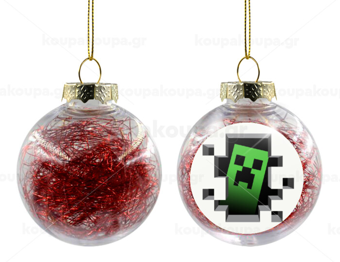 Minecraft creeper, Transparent Christmas tree ball ornament with red filling 8cm