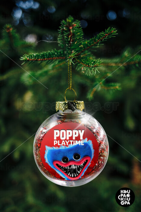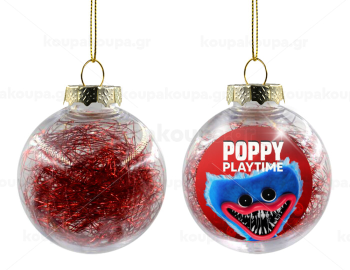 Poppy Playtime Huggy wuggy, Transparent Christmas tree ball ornament with red filling 8cm