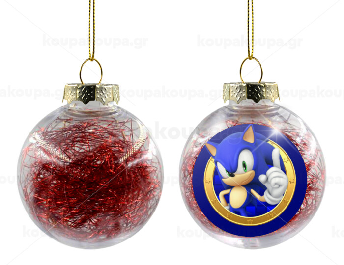 Sonic the hedgehog, Transparent Christmas tree ball ornament with red filling 8cm