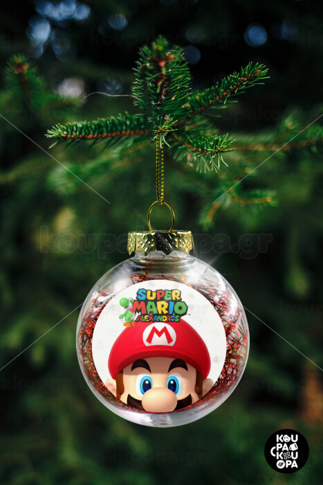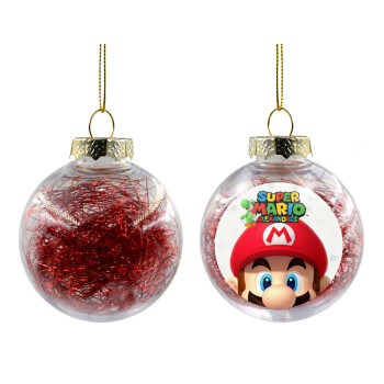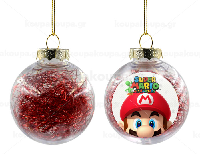 Super mario head, Transparent Christmas tree ball ornament with red filling 8cm