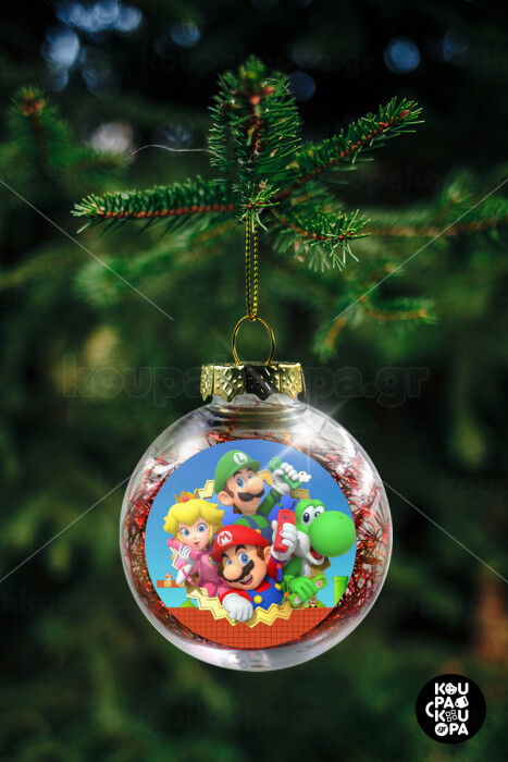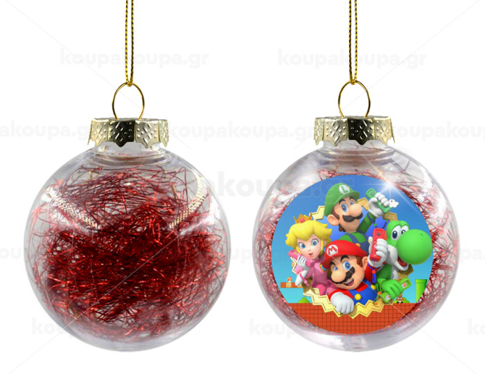 Super mario and Friends, Transparent Christmas tree ball ornament with red filling 8cm