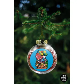 Super mario Jump, Transparent Christmas tree ball ornament with red filling 8cm