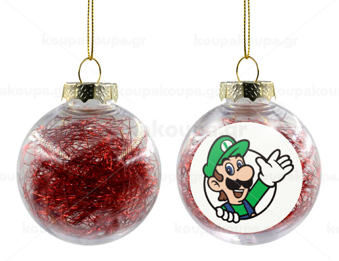 Super mario Luigi win, Transparent Christmas tree ball ornament with red filling 8cm