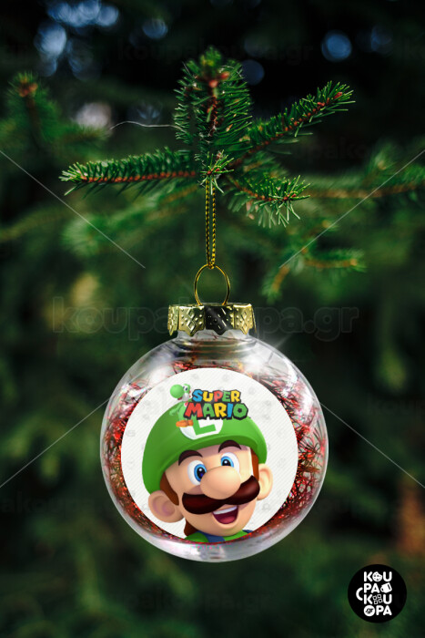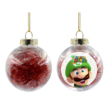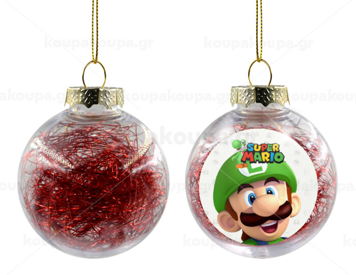 Super mario Luigi, Transparent Christmas tree ball ornament with red filling 8cm