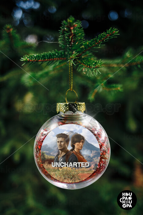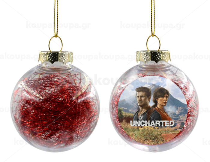 Uncharted, Transparent Christmas tree ball ornament with red filling 8cm