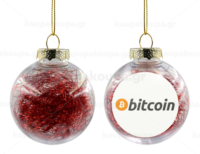Bitcoin Crypto, Transparent Christmas tree ball ornament with red filling 8cm