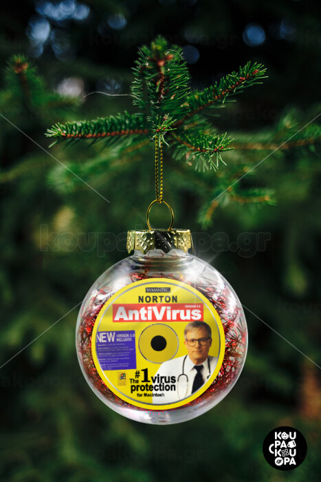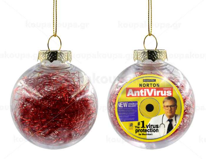 Norton antivirus, Transparent Christmas tree ball ornament with red filling 8cm