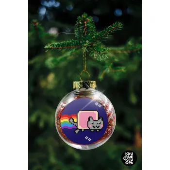Nyan Pop-Tart Cat, Transparent Christmas tree ball ornament with red filling 8cm