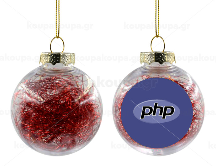 PHP, Transparent Christmas tree ball ornament with red filling 8cm