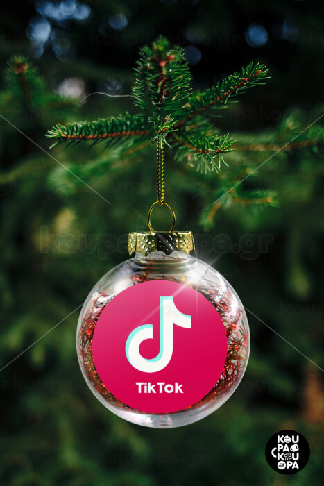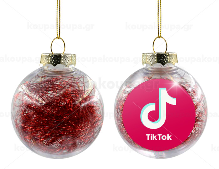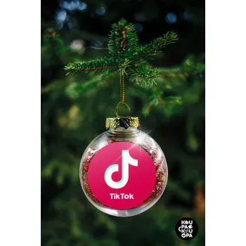 tik tok pink, Transparent Christmas tree ball ornament with red filling 8cm
