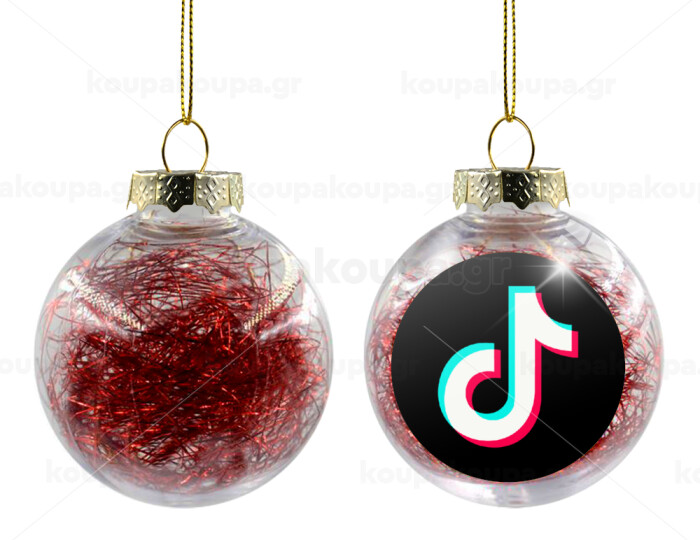 tik tok, Transparent Christmas tree ball ornament with red filling 8cm