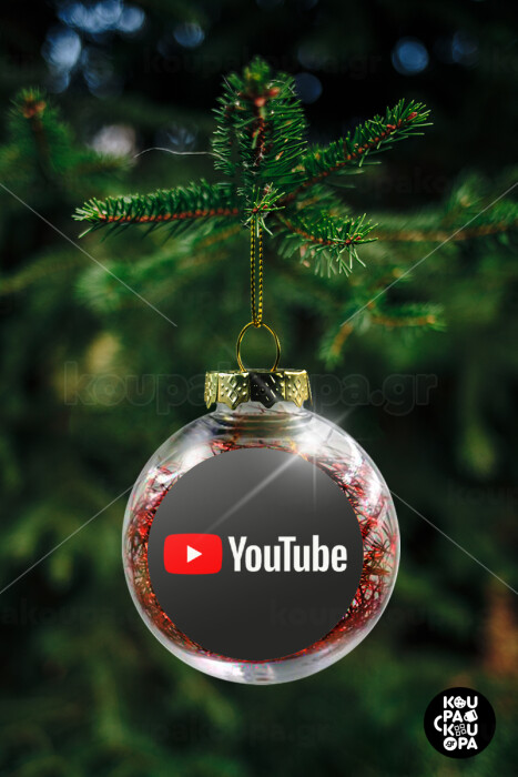 Youtube, Transparent Christmas tree ball ornament with red filling 8cm