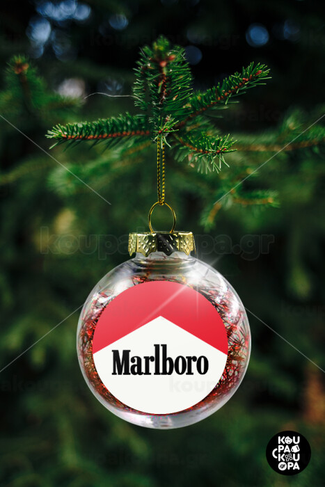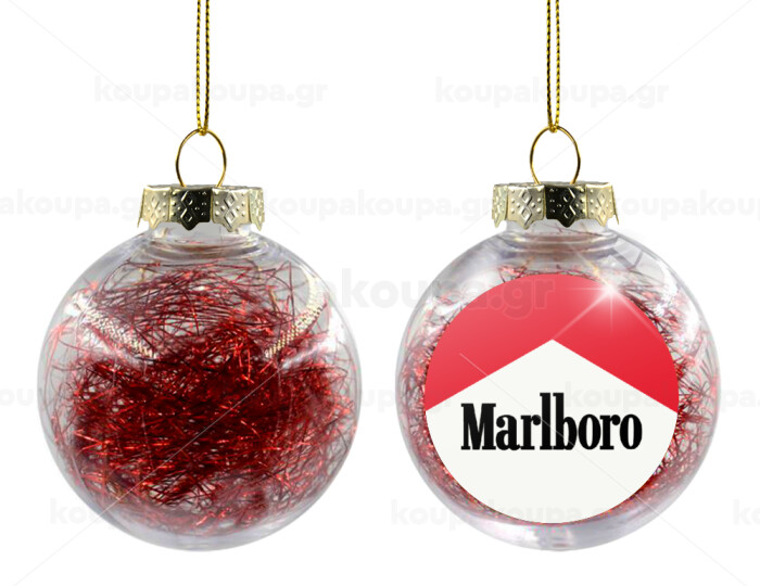 Marlboro, Transparent Christmas tree ball ornament with red filling 8cm
