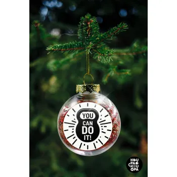 You can do it, Transparent Christmas tree ball ornament with red filling 8cm