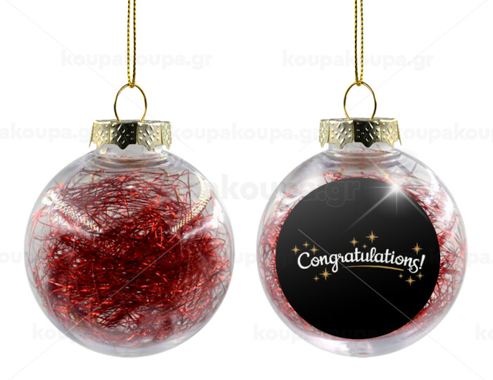 Congratulations, Transparent Christmas tree ball ornament with red filling 8cm