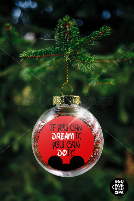 If you can dream it, you can do it, Transparent Christmas tree ball ornament with red filling 8cm