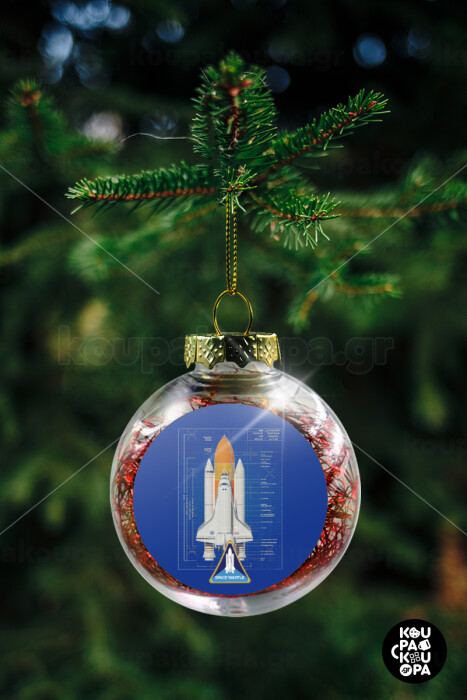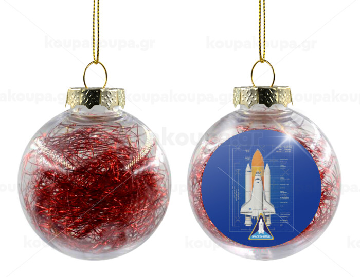 Nasa Space Shuttle, Transparent Christmas tree ball ornament with red filling 8cm