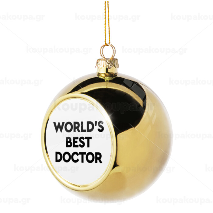 World's Best Doctor, Golden Christmas tree ball ornament 8cm