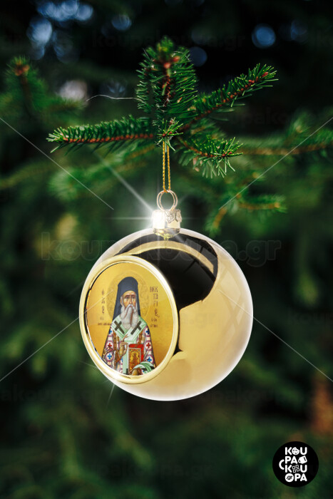 Saint Nektarios, Golden Christmas tree ball ornament 8cm